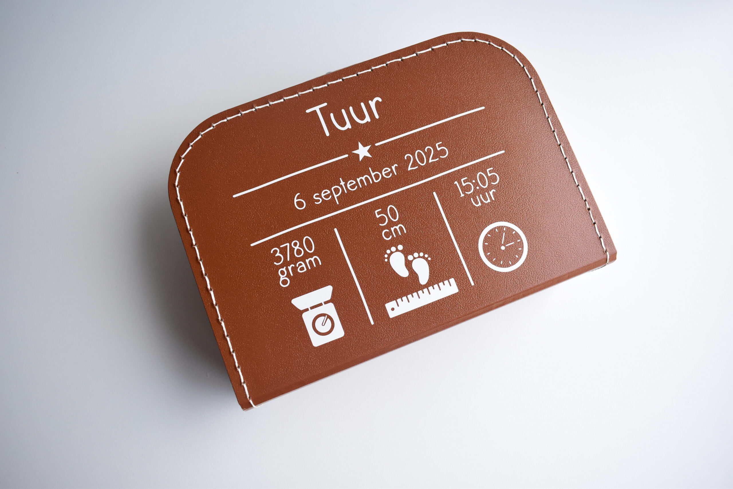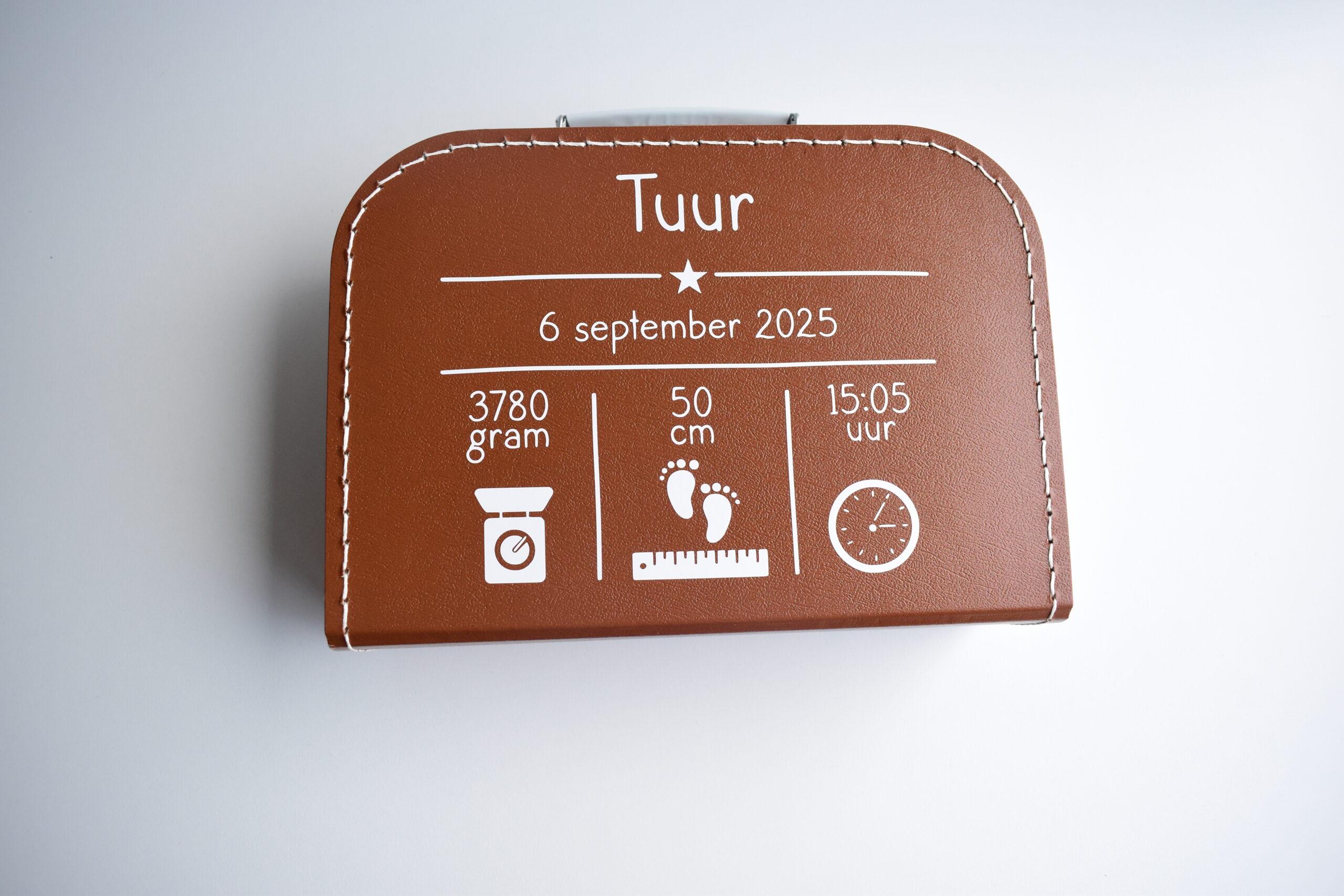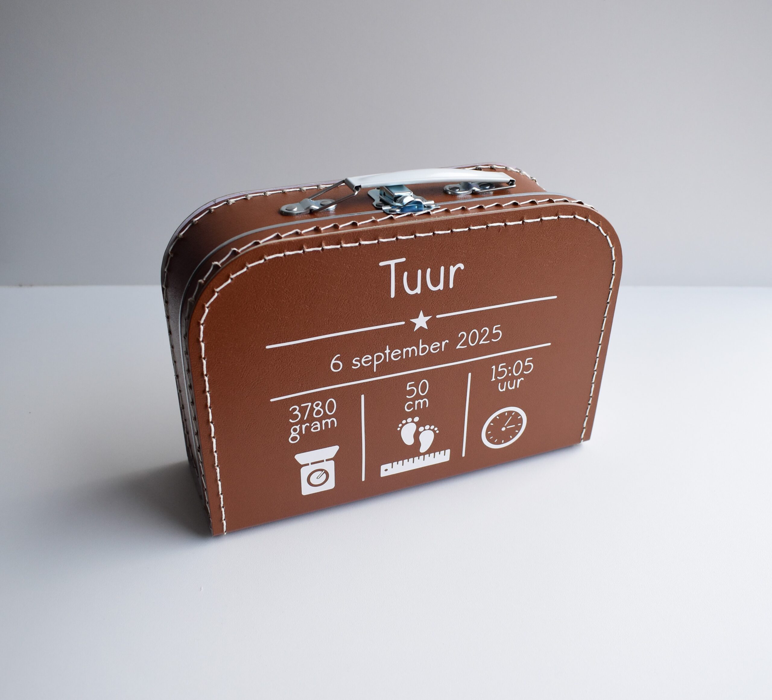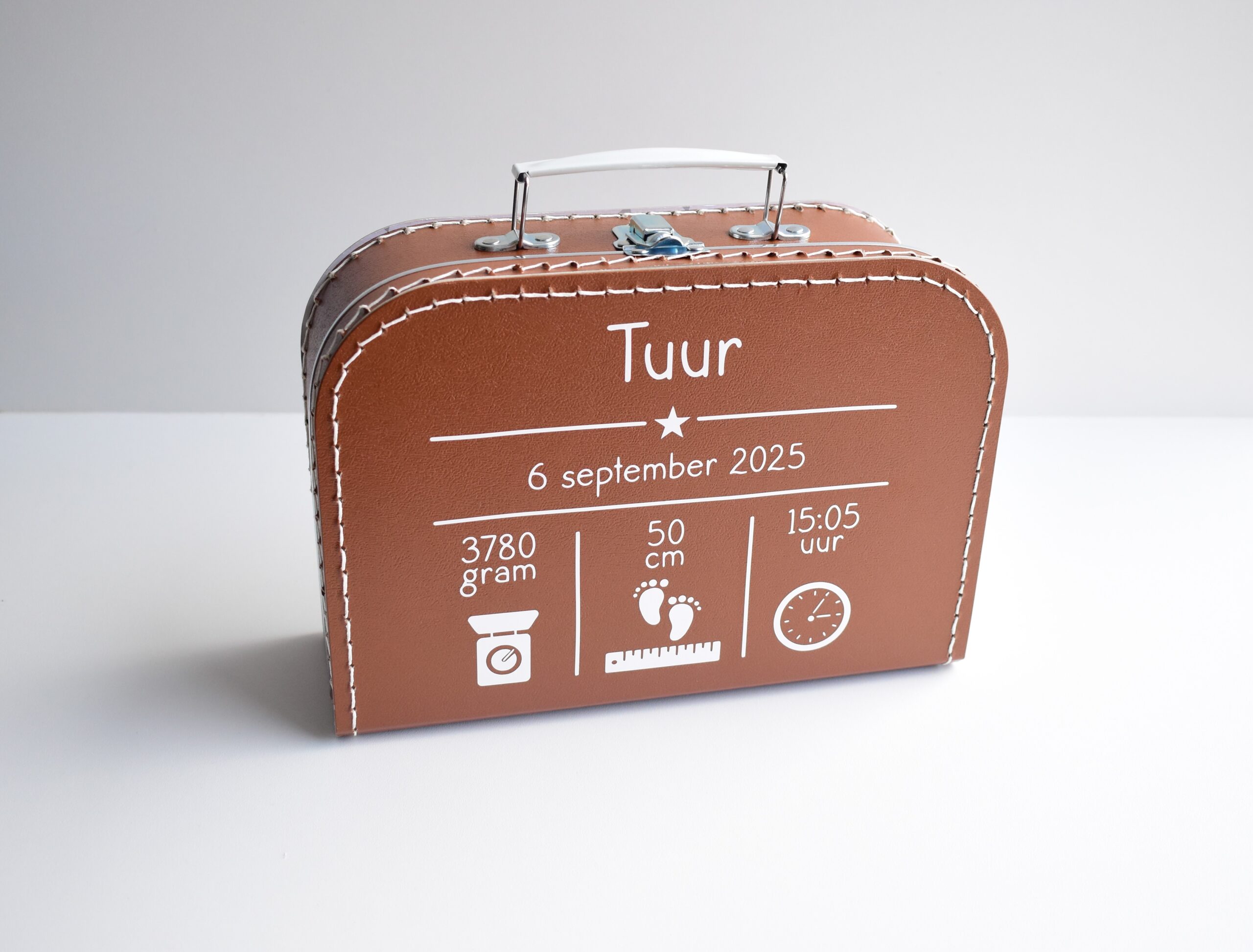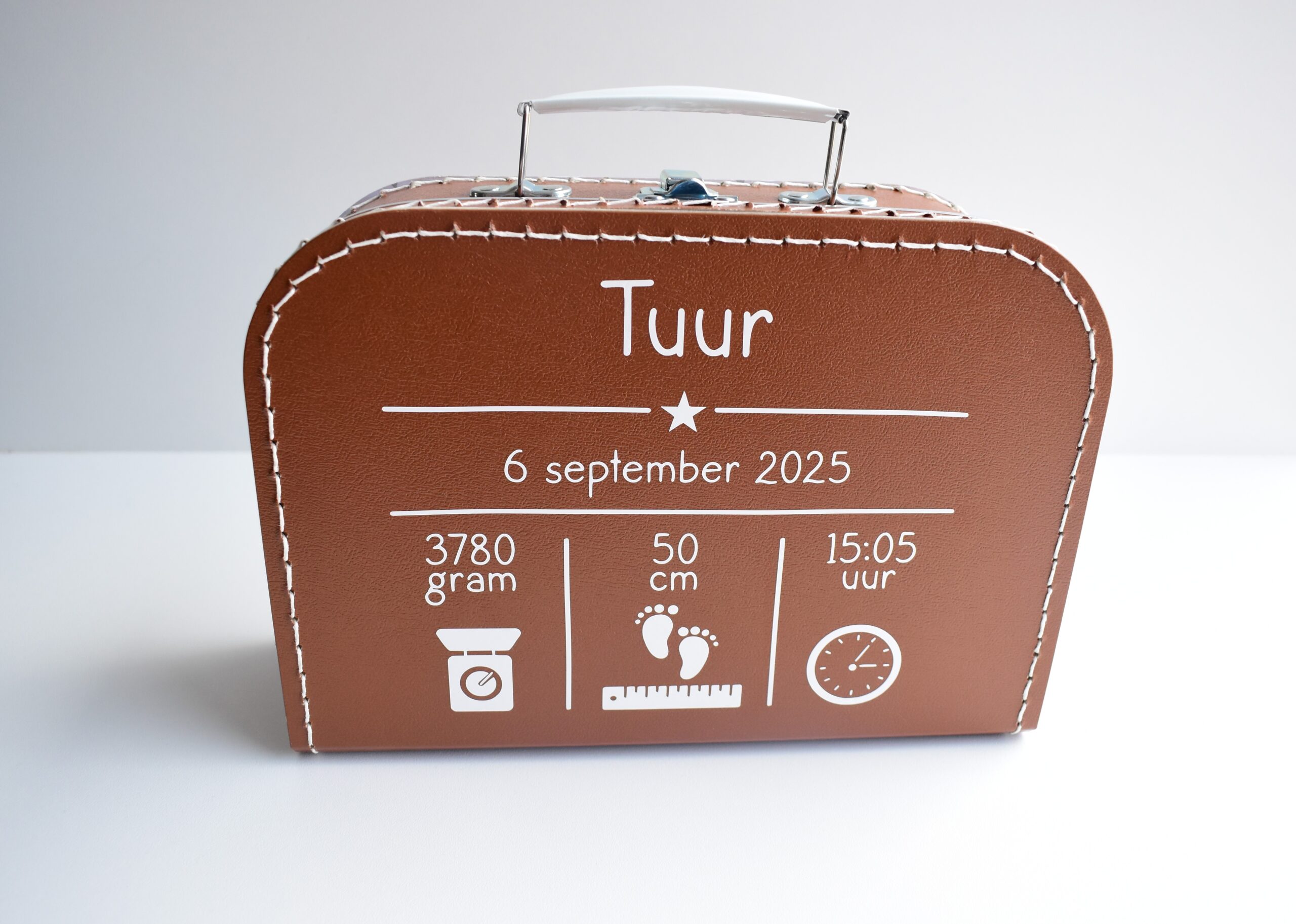Zodra het koffertje is voorzien van de geboortegegevens van de baby, is dit toch een super leuk kraamcadeautje!