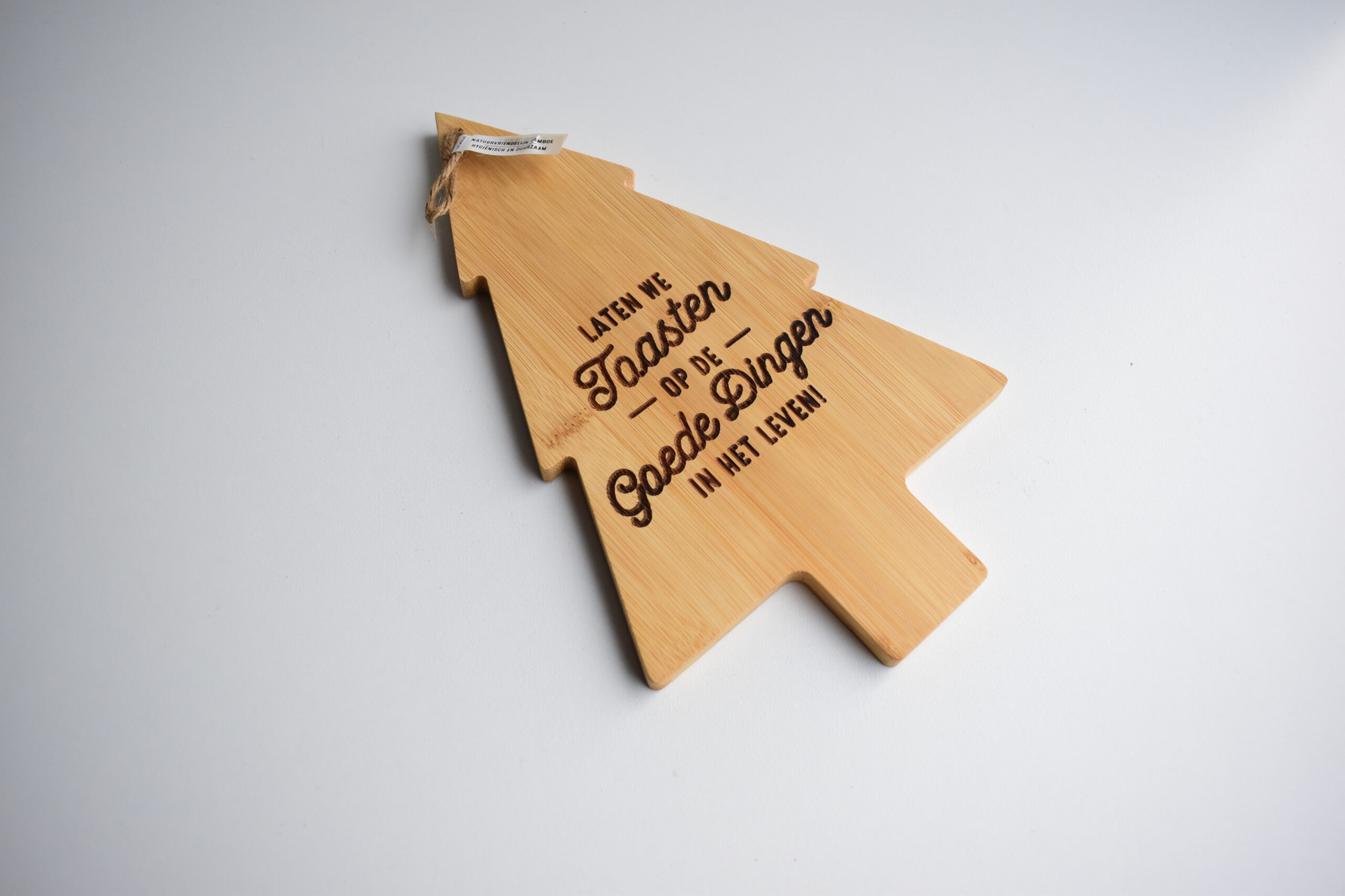 Super tof borrelplankje met tekst Laten we toasten op de goede dingen in het leven om de juf, meester, je buurvrouw of buurman, zus of broer, bestie of oma of opa een fijne kerst mee toe te wensen!